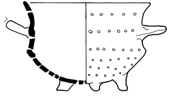 | 4b | diep vergiet met knik bodem-wand en hoge zijwand met afgeplatte rand, poten |