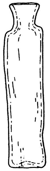 | 4b | kleine smalle cilindrische fles met korte cilindrische hals, opgestoken bodem met pontilmerk |