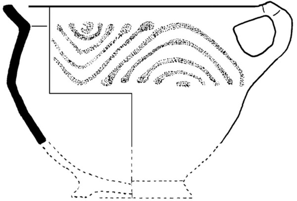 | 4b | bolle pispot met hoge schouder en geknikte rechte rand, standring |