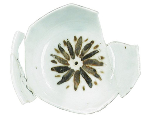 | 5c | bovenglazuur rood, groen en blauw (?), spiegel: veelpuntige ster, uitwendig: bloemen, geometrische band langs rand polychroom |