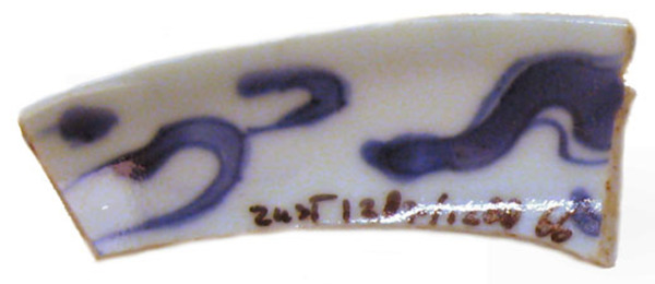 | 5c | vlag: draak bij rots, onderzijde: idem onderglazuur blauw |