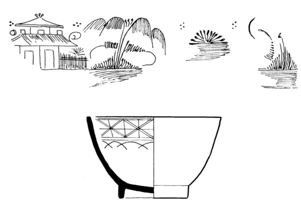 | 5c | Chinese tuin met pagode, inw. brede kruisjesband blauw |