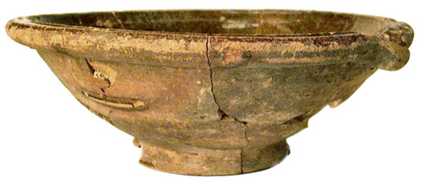 | 4b | bolle kom met haaks naar buiten geknikte rand, aan buitenzijde aangedrukt, standring |