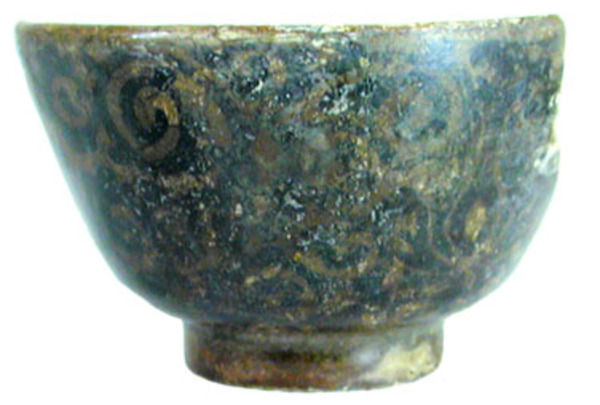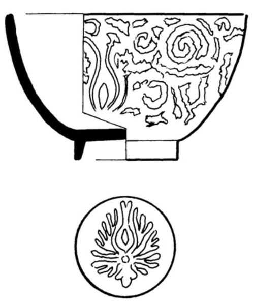 | 5c decoratie | uitw: bloemdecor; inw: op spiegel: gestileerde bloemenstruik blauw |
