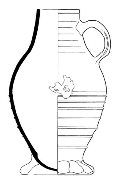 | 4b | peervormige kan met schouder overgaand in hals met rechte rand, op standring |