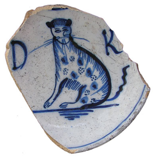 | 5c decoratie | zittende kat tussen letters D(e) K(at) blauw |