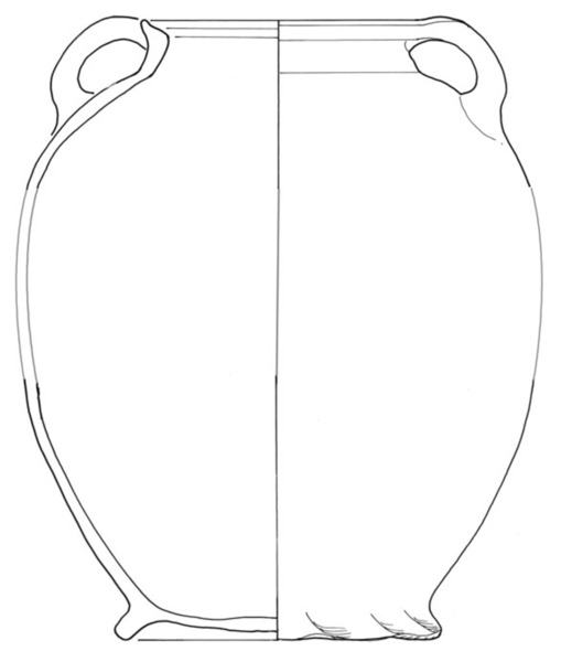 | 4b vorm | hoge pot met een ingesnoerde hals en een aan de bovenzijde afgeplatte rand, standring |