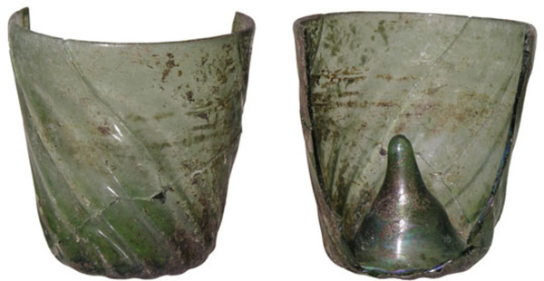 | 4b vorm | conische beker met verticaal of naar rechts- of links draaiend ribbelpatroon, opgestoken bodem met pontilmerk |