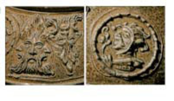 | 5c | appliques: portretbustes (narrenkoppen), acanthusbladeren (uitgewerkt tot baardmanmasker met drie gezichten) en ornamentale banden met floraal motief (op hals binnen banen met radstempel) |