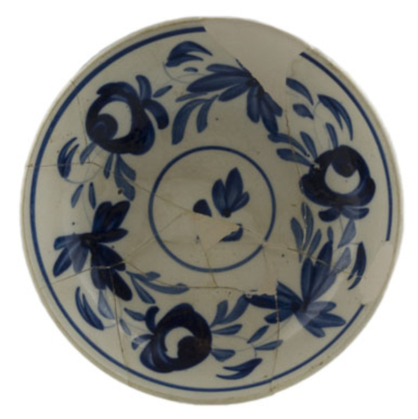 | 5c | inw: onder rand filet, daaronder een uitbundige bloem- en bladversiering, op spiegel: blaadjes binnen een cirkel blauw |