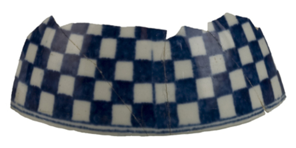 | 5c decoratie | uitw: onder rand dubbel filet, daaronder dambordpatroon blauw |