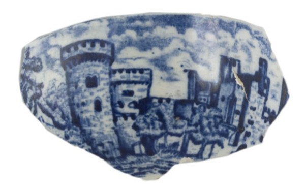 | 5c decoratie | inw: onder rand geometrisch filet; uitw: kastelen blauw |