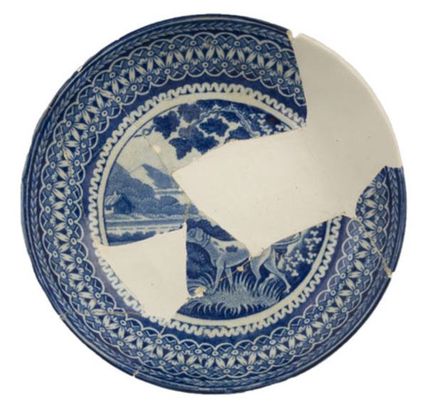 | 5c decoratie | inw: blauwe rand, vlag: breed geometrische filet, spiegel: hazewind in landschap blauw |
