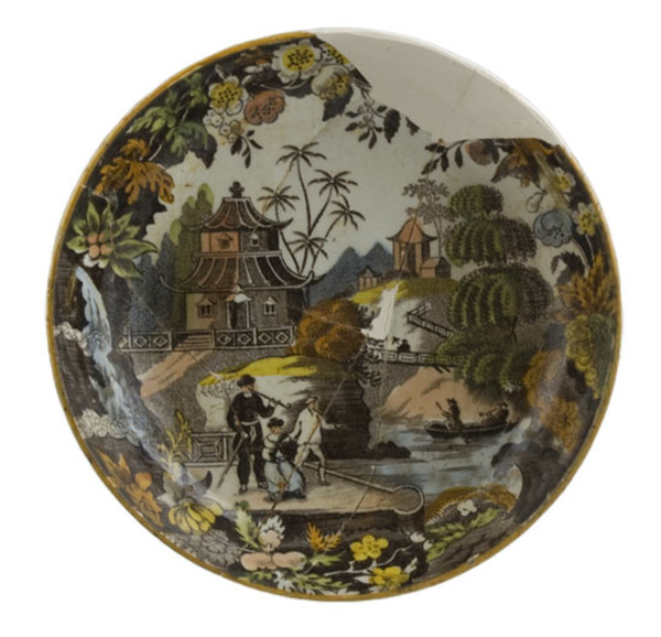 | 5c | inw: gele rand, vlag: bloemenfilet, spiegel: Chinees tuinlandschap met pijprokend persoon polychroom |