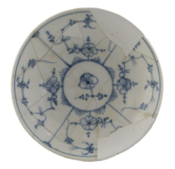 | 5c | inw: vlag: vier panelen met strobloemen; spiegel: strobloem onderglazuur blauw |