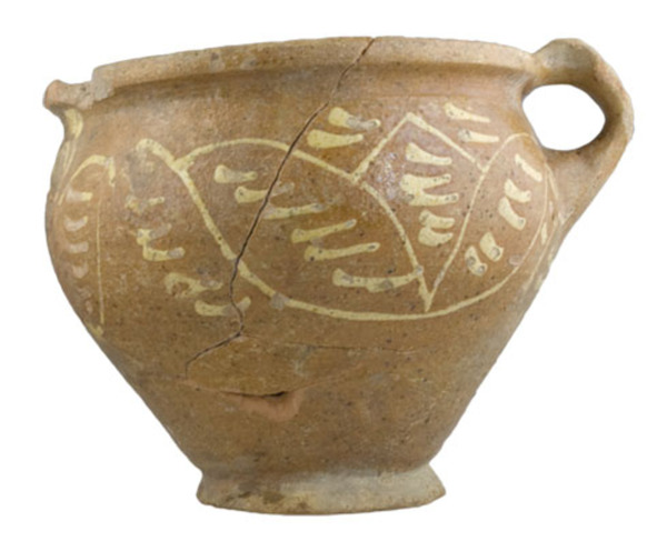 | 4b | bolle pispot met hoge schouder en geknikte rechte rand, standring |