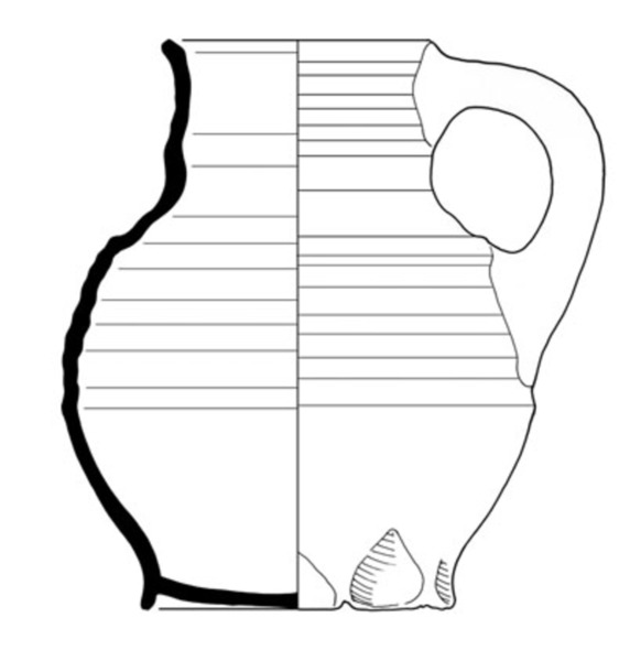 | 4b | bolle drinkkan met cilindrische hals, diverse ribbels op hals en schouder, lobvoeten |