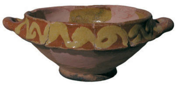 | 5c decoratie | slibversiering: op rand slingerlijn, inwendig witte sliblaag |