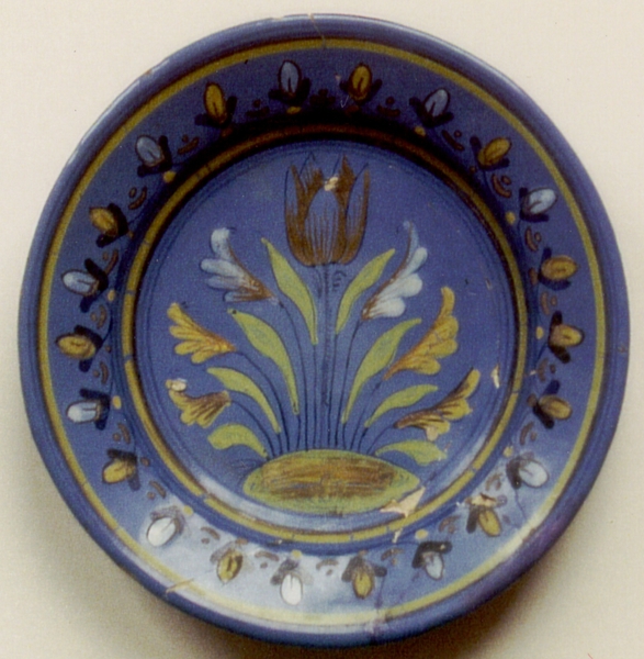| 5c | in kobalt- en mangaanoxide: vlag: ornamentale rand; spiegel: bloeiende tulp inwendig: polychroom |