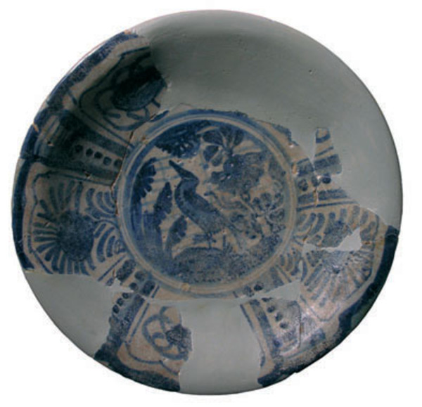 | 5c decoratie | spiegel: vogel in tuin; vlag: vakken met Wanli-motief inwendig: blauw |