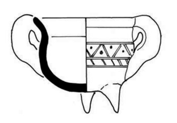 | 5c decoratie | engobe met ingekraste golflijn met punten |