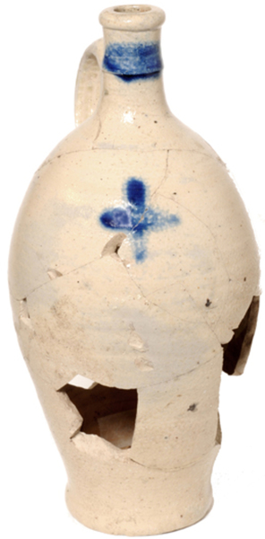 | 4b | P-kruik: iets bolle fles met cilindrische nek en verdikte lip, ribbels op hals, standvoet |