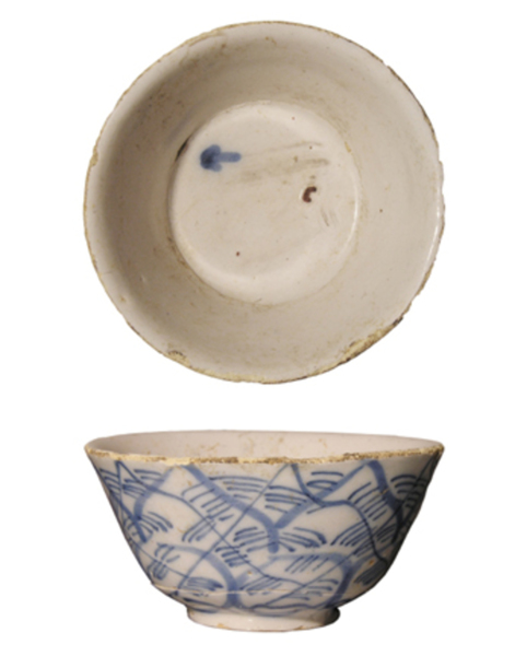 | 5c decoratie | uitwendig: ornamentaal motief, inwendig: driespruit blauw |