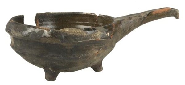 | 4b | bolle steelkom met knik bodem-wand en smalle kraagrand, poten |