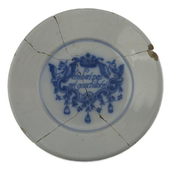 | 5c | spiegel: guirlandes met kroon en dieren; tekst: 6 een bort dat net geschildert is blauw |