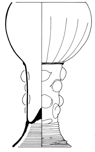 | 4b | roemer met korte halfronde cuppa, geribde draad op de overgang naar de schacht en één of meer verspringende rijen noppen, ook met patroonvorm, opgestoken bodem met pontilmerk, gewonden draadvoet |