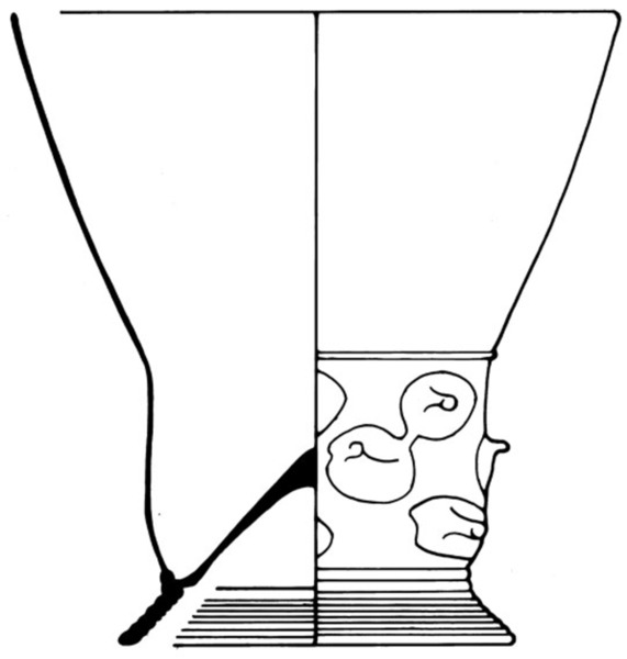 | 5c | drie horizontale rijen verspringende puntnoppen; uitwendig glasdraad op overgang stam naar cuppa |