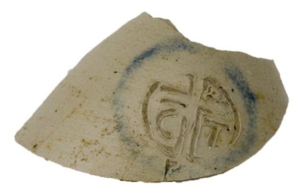 | 5c decoratie | blauwe cirkel rondom blindmerk met kruis en letters CT blauw |