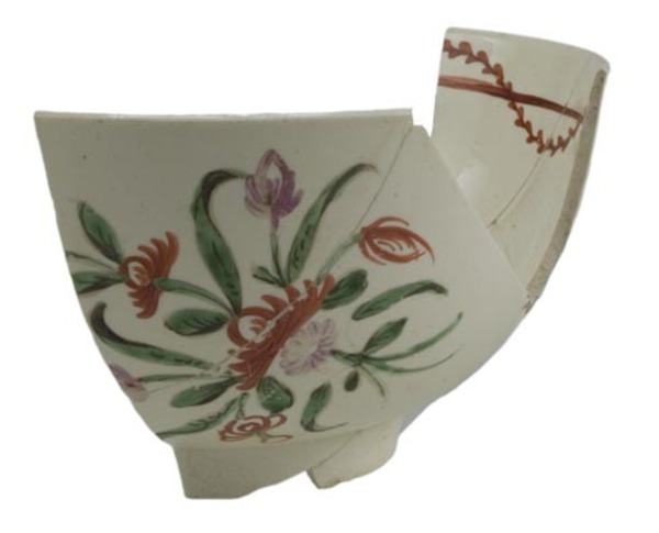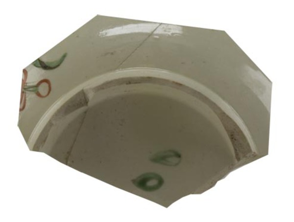 | 5c | inwendig: onder rand lijn en slingerlijn in rood, op spiegel: bloem en blad in rood, groen en paars; uitwendig: bloem en blad in rood, groen en paars |