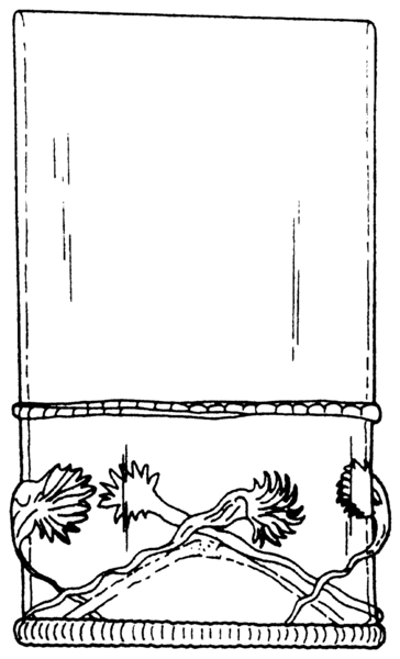 | 4b vorm | cilindrische beker met horizontale draad rondom en daaronder drie of vier diagonale draden in klauw eindigend, opgestoken bodem met pontilmerk, geribde voetring |
