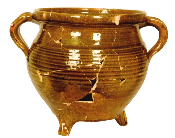 | 4b | grape met hoge afgeronde schouder en ribbel op halsaanzet, kraagrand met dekselgeul, vlakke bodem met poten |