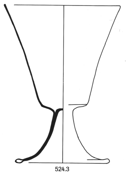 | 4b | slanke conische voetbeker, ook met draadversieringen, opgestoken ingevouwen hoge voet met pontilmerk |
