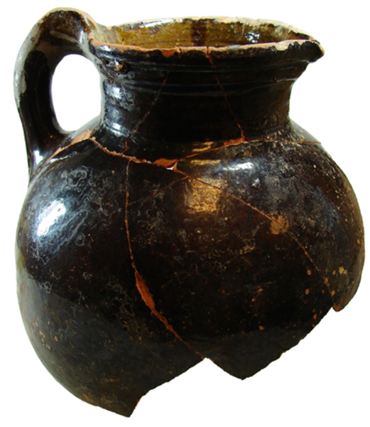 | 5b afwerking (kleur/glazuur) | loodglazuur, uitwendig met mangaanoxide |
