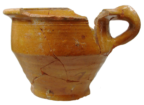 | 4b | hoge pispot met buiknik en uitstaande platte rand, op standring |