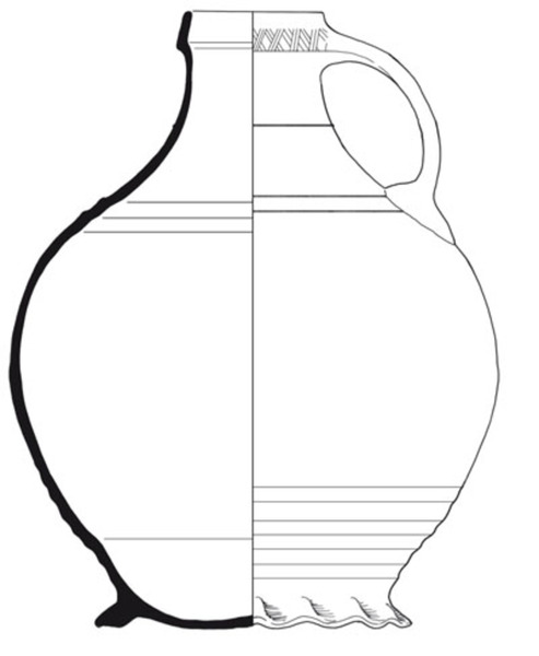 | 4b | bolle kan met cilindrische hals en kraagrand, ribbel op halsaanzet, standring |