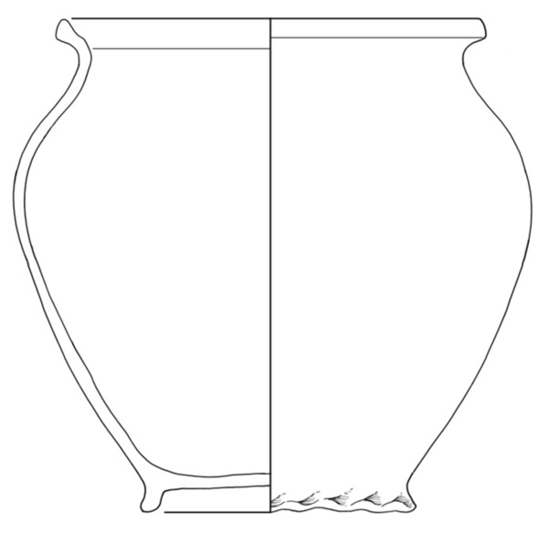 | 4b | handgevormde bolle pot met driehoekig verdikte rand, standring |
