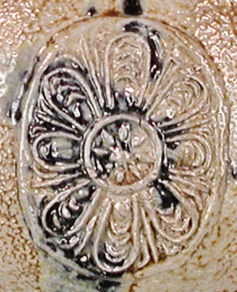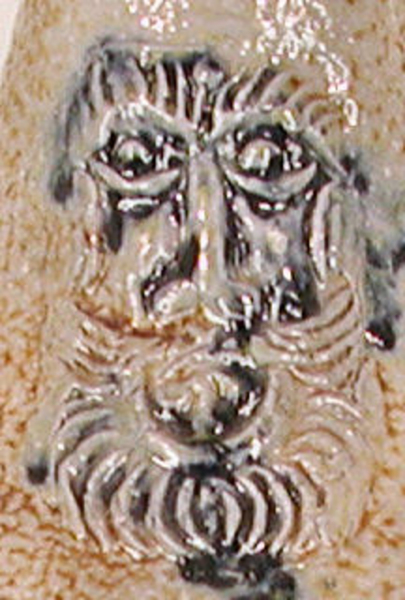 | 5c decoratie | pantermotief / baardman met ronde baard / open mond blauw staart bij ooraanzet |