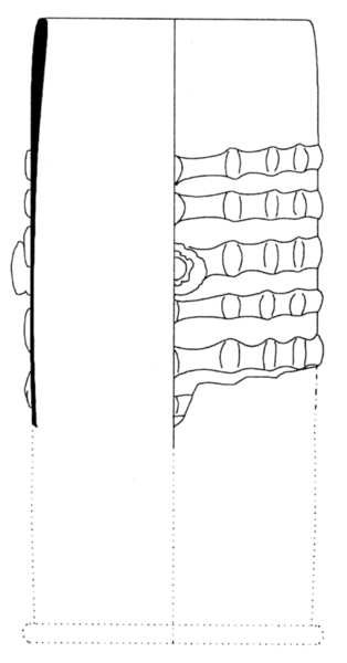| 4b | cilindrische of licht conische beker met wafelpatroon, rechte lip, opgestoken bodem met pontilmerk, voetring |