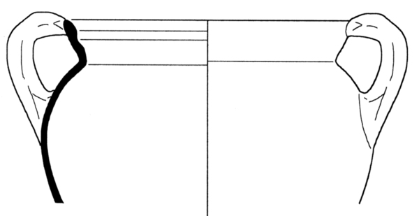 | 4b | bolle grape met uitstaande hals, rand aan bovenzijde afgeplat tot richel |