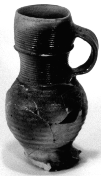 | 4b | bolle kan met ribbel ter hoogte ooraanzet en ribbel op hals, op standring |