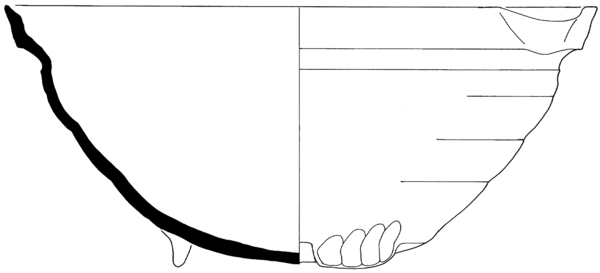 | 4b | diepe afgeronde kom met ingesnoerde hals en manchetrand, lobvoeten |