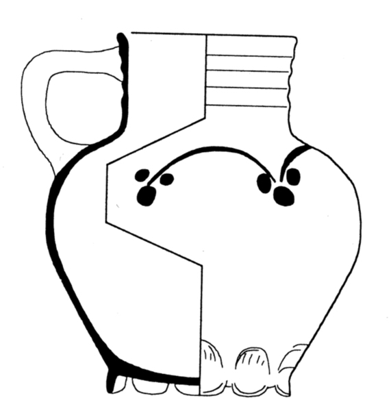 | 4b | bolle kan met hoge schouder, cilindrische hals met rechte rand, lobvoeten |