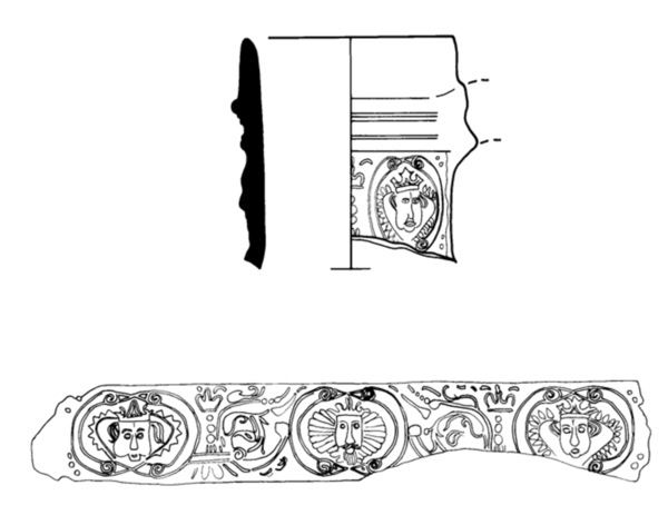 | 5c | applique met drie portretten en ornamentale decoratie uitwendig: blauw |