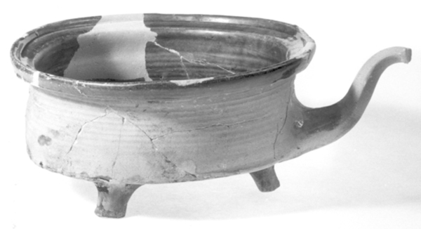 | 4b | wijde grape met scherpe knik tussen bodem en vrijwel verticale wand, naar buiten geknikte rand met dekselgeul met lip |