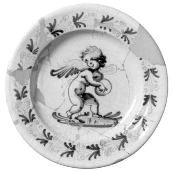 | 5a baksel | tinglazuuraardewerk uit Italië , geelbakkend |