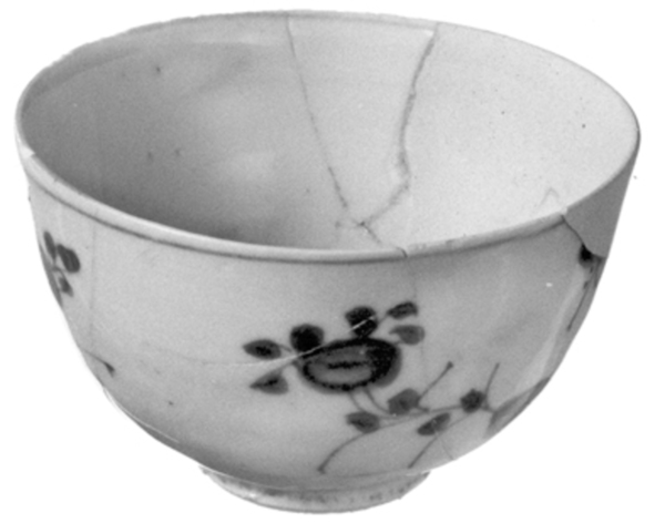 | 5c | blauwe beschildering, uitwendig: gestileerde bloemen, inwendig: ornamentje inwendig: onderglazuur blauw |